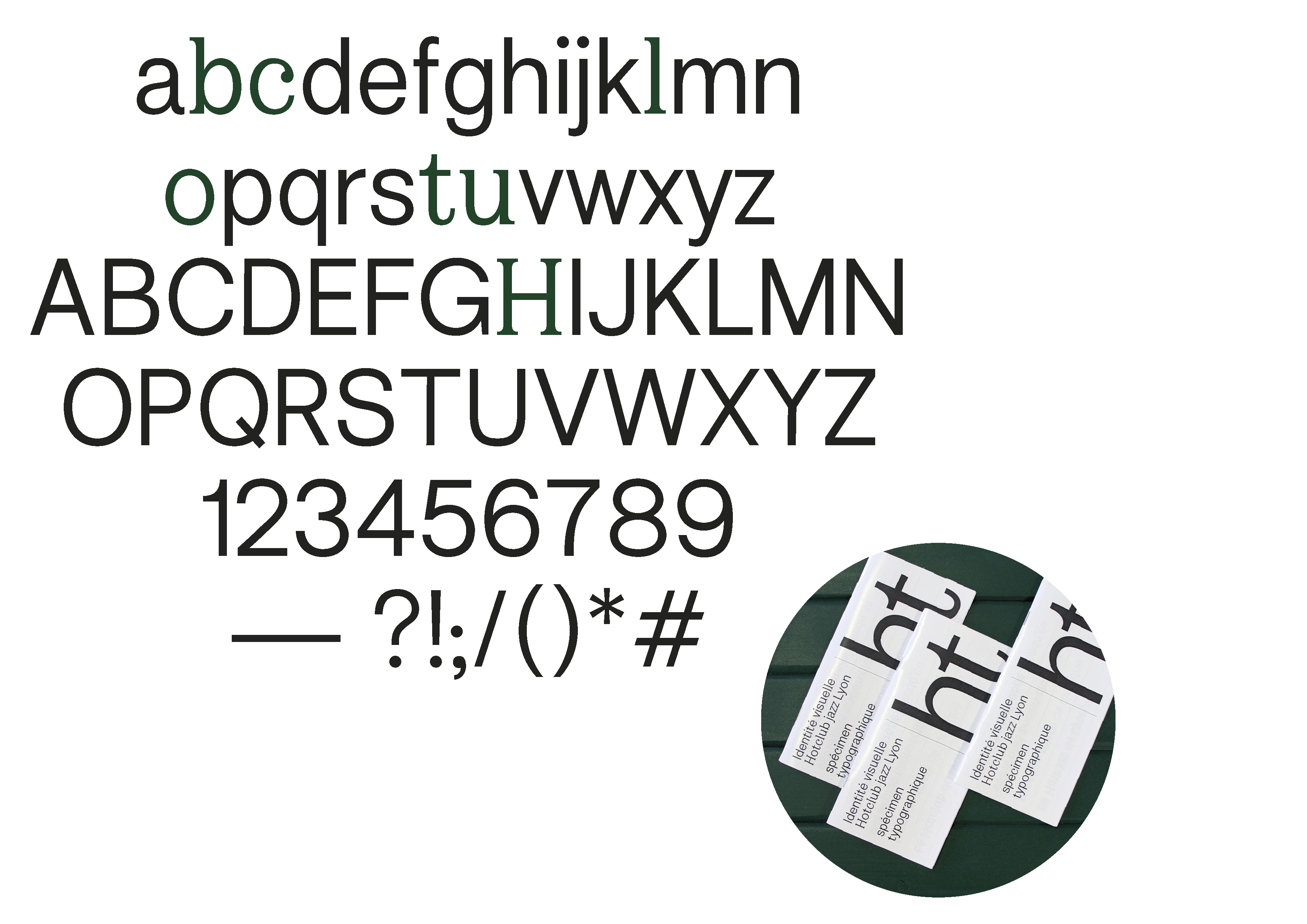 Photographies et dessin d’une police de caractère avec variations sérifs / sans sérifs.