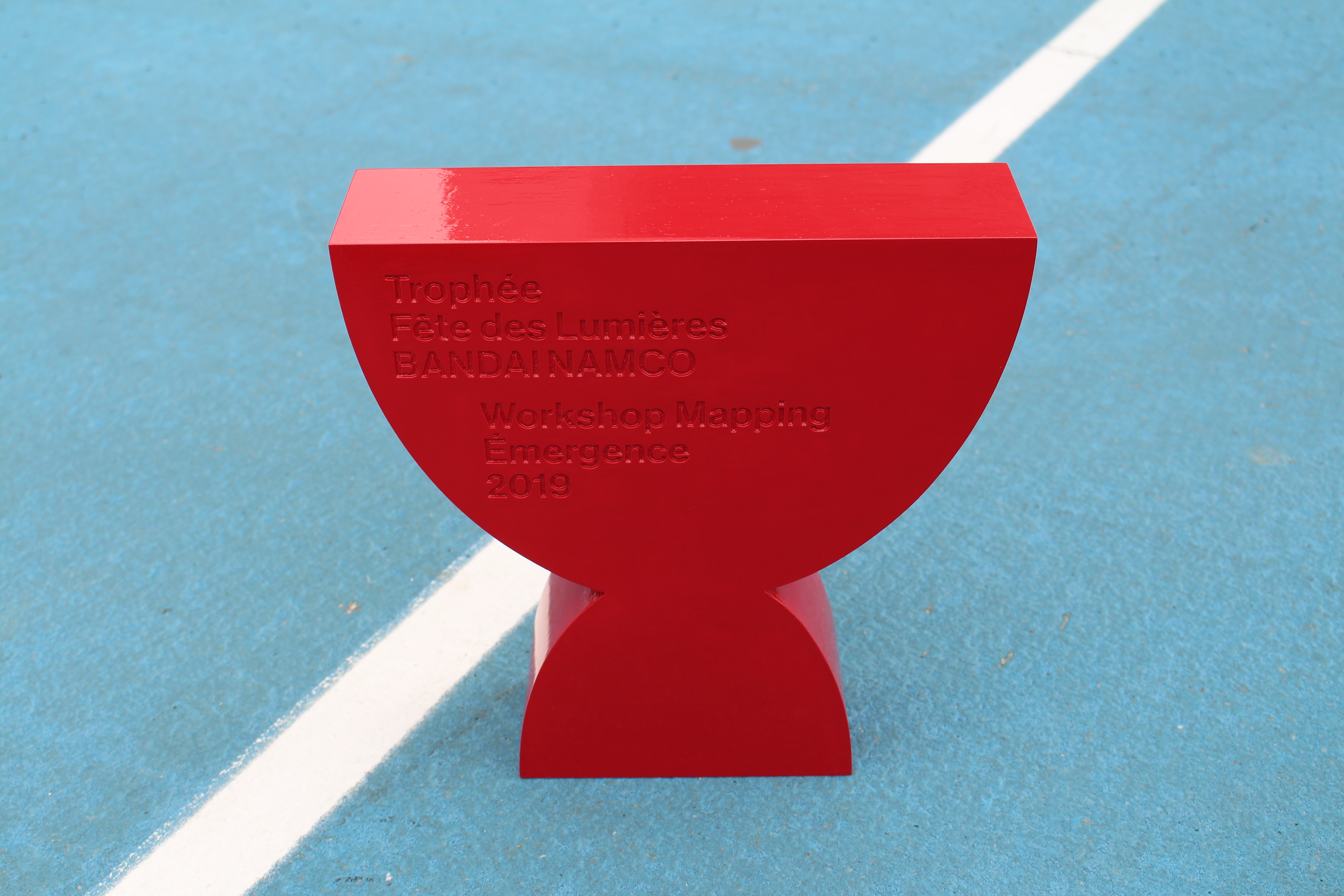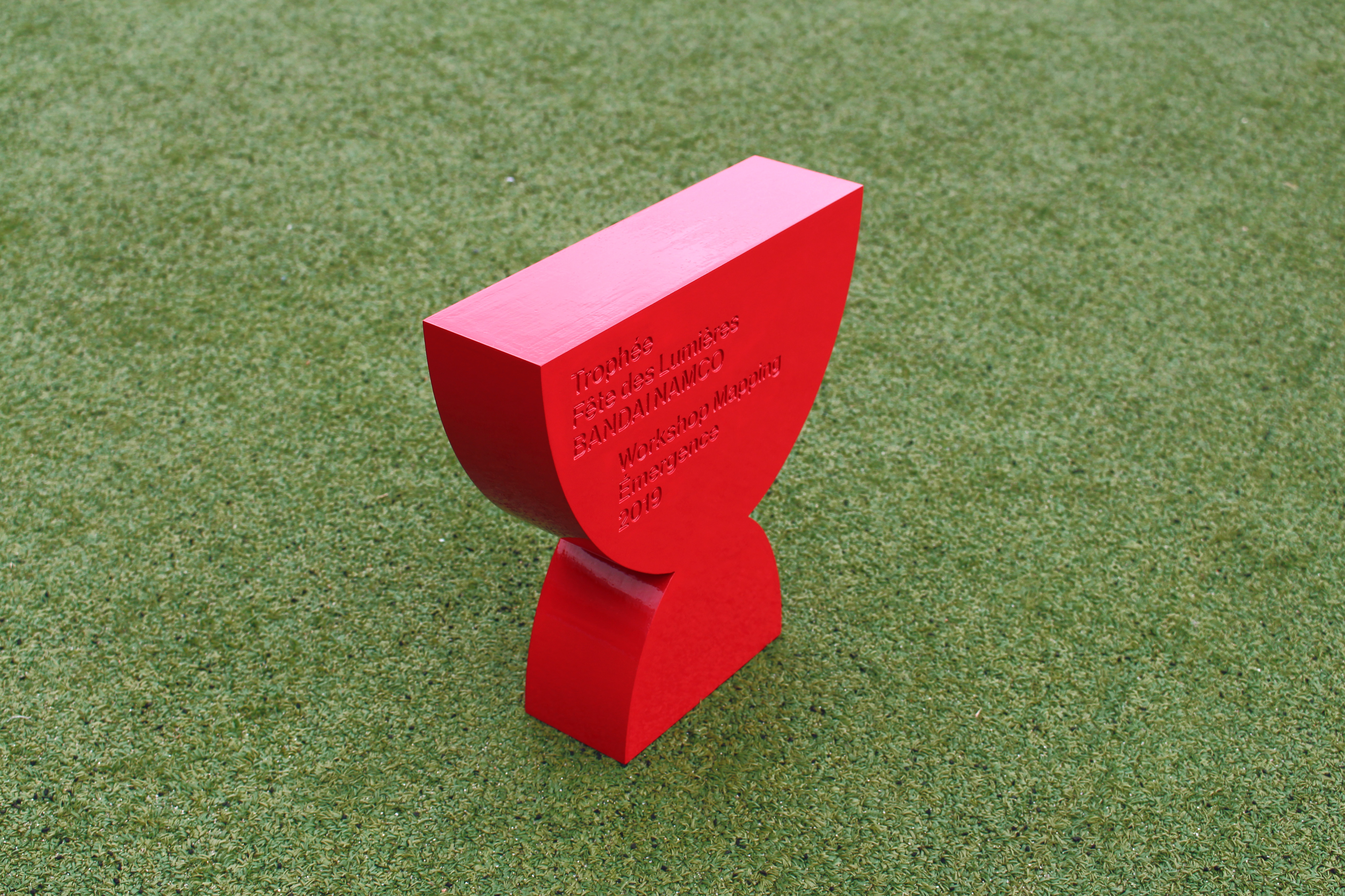 Le thème de l’édition 2019 du Workshop Mapping Émergence à l’issu duquel a été délivré le trophée était Heroes and Vilains. La dimension manichéenne du thème imposé a été le point de départ pour l’élaboration du trophée. Au delà de l’opposition bien-mal que suggère cette observation, le trophée s'est développé à partir de l’idée d’un objet dans sa version la plus simplifiée, binaire. Comme un objet-image. En partant d’une forme stéréotypée, il s’agissait de procéder à une réduction, à une simplification des caractèristiques physiques de l’objet. Le résultat de ce processus est un objet monochrome, qui pourrait presque sembler en 2D, le plus épuré, dépuillé possible.